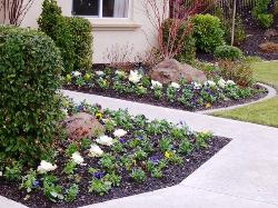 Want to brighten up your landscape? Do it with annuals! Annual flower beds are fun and simple and can provide brilliant color throughout the seasons. Nothing in the landscape can provide as much color, for as long a time, as can flowering annuals. Pansy, viola, and petunia are a few of the best for late fall planting. Annual flowers look great in groupings near the front door, along walkways, patios, or beside pools. For the best effect, limit your planting to 2 or 3 colors per planting bed. If you'd like a more formal look, use one variety of annual. Good choices include geraniums, marigolds, and petunias. Plant in groups of 10 or more for best effect. If you like a vivid color scheme, try marigolds, salvia, or snapdragons. For subtler tones, select the blues and violets of pansies. |